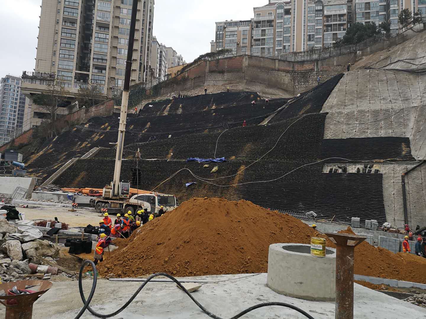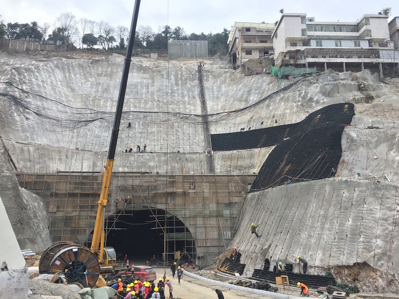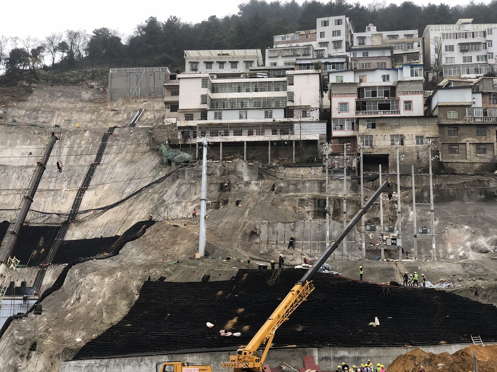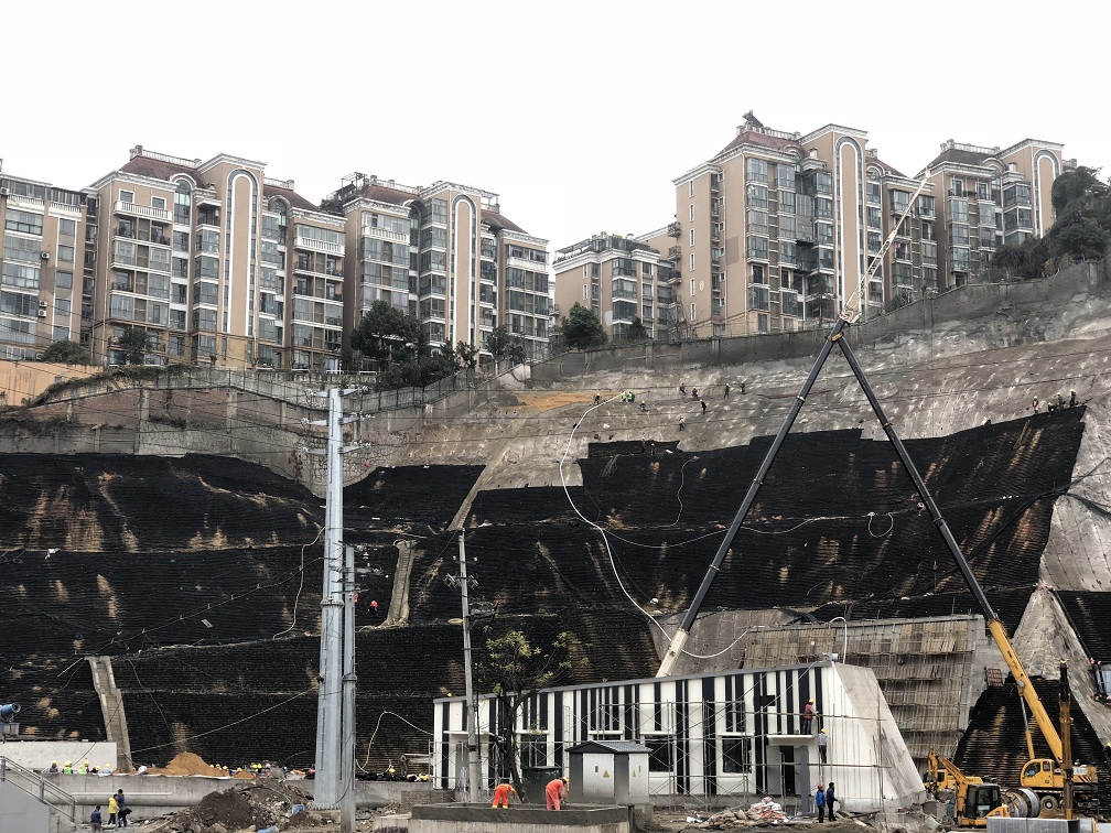 熱烈祝賀人民大道通車,相信大家都看到人民大道旁邊的高陡邊坡上鋪上了一層黑色的皮膚。